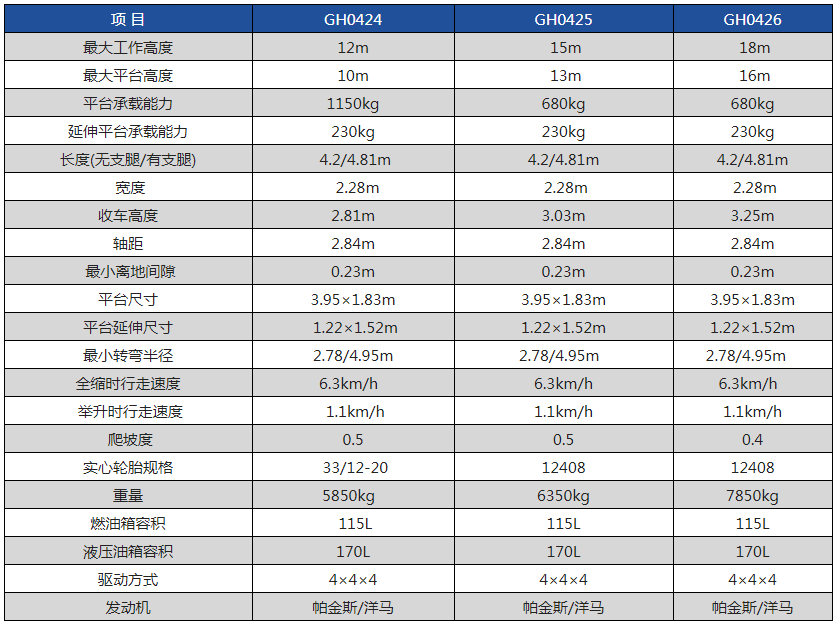 自動(dòng)調(diào)平液壓支腿、雙滑移平臺(tái)(1.2米)、無(wú)痕跡粗糙地面輪胎、擺動(dòng)軸、直流動(dòng)力源、空氣管接至平臺(tái)